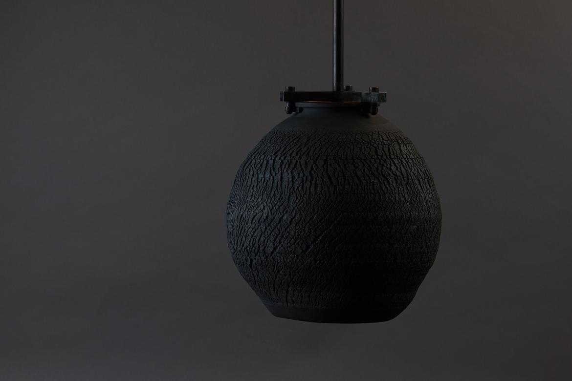 The Desert Table Lamp and Large Desert Pendant in the Negative Finish will be shown with the rest of the designs in the series: the Desert Silo Lamp, the Desert Table Lamp, and the Desert Pendant in Small, Medium, and Large. All pieces will be on view and available for purchase through the E.R. Butler & Co. showroom on 55 Prince Street from May 14, 2022 until August 14, 2022.